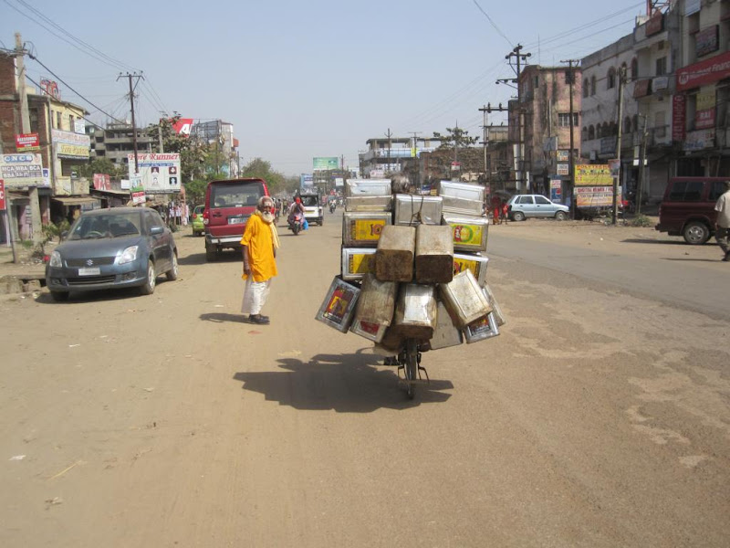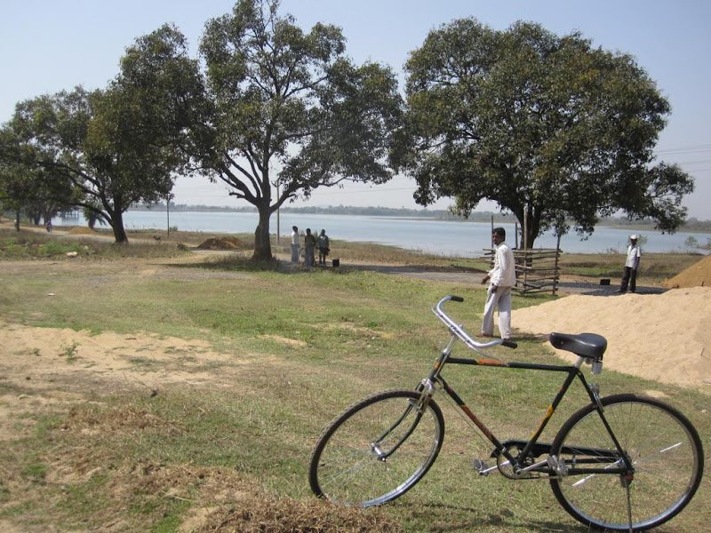 Gleich nach dem Kauf steht den Rädern und ihren Fahrern die erste Bewährungsprobe bevor. Die mit GoogleEarth geplante Route führt über reichlich Singletrails auf trockenem Erdboden durch die oft steppenähnliche Landschaft bei herrlichem Wetter (30°C, Trockenzeit). Während Pfade im Überfluss existieren, muss man hier Straßen eher suchen. Wir erleben indischen Straßenbau hautnah, natürliche Fahrzeugwaschanlagen, verwunderte oder lachende Menschen, die uns oftmals auch anfeuern.