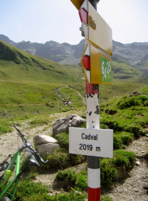 Unsere Guides und Streckenscouts haben für uns einen tollen Weg durch die Schlucht des „Bergüner-Stein" hinunter nach Bellaluna und weiter nach Filisur gefunden. Kurz unterhalb Filisur begann der wohl längste Anstieg der ganzen Tour. Wir „kletterten" nämlich nun quasi in einem Zug von 957 müM bis hinauf auf 2574 müM zum Furcletta-Pass. Das sind netto genau 1617 Meter Steigung !! Auf einem kleinen Trail erreichten wir zuerst Alvaneu-Dorf. Dort begann der Aufstieg zum Maiensäss Aclas- Dafora. Weiter bis zur Alp da la Creusch auf immerhin schon fast 2300 m. Auf dem Furcletta Pass (2574 m) angekommen, musste ich erst mal nach Luft ringen, aber vor allem auch das unglaubliche Panorama geniessen.