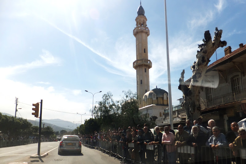 In Algeriern bekamen wir es erneut eindrücklich vor Augen geführt, welche unvergleichbare Faszination und Begeisterung in der Bevölkerung eine Rundfahrt auslösen kann. Die Algerier haben kurzerhand 4 Rennen der UCI Africa Tour aneinander gereiht, so dass eine zweiwöchige Rundfahrt herauskam. Ein organisatorischer Kraftakt, dessen Etat rund 6 Mio. Euro betragen haben soll. Durch die Wüste, am Meer und durchs Atlasgebirge führten die Etappen. Und in den Städten und Dörfern war ein unglaublicher Zuschauerzuspruch zu spüren. Auf jeder Etappe waren zehntausende Zuschauer im Ziel und entlang der Straßen drängten sich die Menschen in 3er und 4er Reihen. Für uns etwas gewöhnungsbedürftig war, dass dieses Vergnügen vorrangig den Männern bestimmt war.