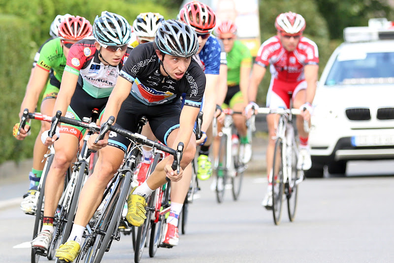 Die Jungs haben im Rennen dagegen einen weniger kühlen Kopf und werfen ihre Kraft auch gerne in den Ring bzw. auf die Straße, lediglich um ihre Anwesenheit zu präsentieren. Dies sorgt in einem Rennen wie Bellheim nicht selten zu Durchschnittsgeschwindigkeiten um die 50km/h auf 200km. Nach dem „Einrollen“ der ersten 100km schaffte es BIKE AID Fahrer Timo Schäfer in eine gut besetzte Spitzengruppe, die aber leider wieder gestellt wurde. Als es letztlich zum finalen Sprint kam, war Patrick Lechner mit frischen Beinen zur Stelle und konnte sich in einem hektischen Finale auf Platz 9 hinter dem Sieger Jan-Niklas Droste (KT Team Heizomat) behaupten. Angesichts des hochkarätigen Teilnehmerfeld mit vielen Profiteams und Nationalmannschaften aus Lettland und den USA eine beachtenswerte Leistung. Wenn gleich in Deutschland leider weiterhin die Unart besteht, bei Strassenrennen nur die ersten eines Rennens auf dem Ergebnis zu würdigen (In Bellheim immerhin 20) und bei rund 200 Startern die Leistung der restlichen 180 mit Füßen zu treten.