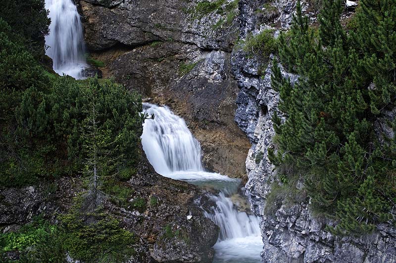 Der nächste Klettersteig kann bis morgen warten. Dieser Klettersteig führt hoch über einen tief eingeschnittenen Fluss-Canyon am Fels und hinter einem Wasserfall entlang. Landschaftlich ein Highlight, vom Schwierigkeitsgrad zwischen B und C gelegen und ohne Probleme zu bewältigen. Trotzdem staune ich, als drei Italiener ohne Klettergurt, Helm und Klettersteigsicherung diesen Steig gehen. Klar – in den Pyrenäen habe ich so einen Steig auch schon bewältigt – ohne Sicherung. Aber da kannte ich den Weg nicht und musste entscheiden, ob ich abbrechen und zurückgehen oder eben weitergehen wollte. Ich entschied mich für das Weitergehen ohne zu wissen, was da genau auf mich zukommt.
