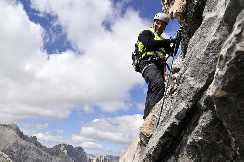Dieser Klettersteig gegenüber der Drei Zinnen ist sicher einer der spektakulärsten in den Dolomiten. Auf dem Gipfel des Paternkofel erleben wir traumhafte Ausblicke auf die Drei Zinnen und die umgebenden Dolomiten-Gipfel. Ein Highlight par exellence!