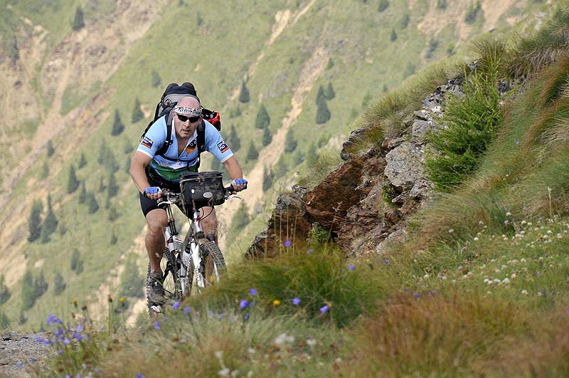 Die Steilheit der nun kommenden 550 Höhenmeter zur Sillianerhütte auf 2447 Metern Höhe ist unbeschreiblich. An sich gerade noch fahrbar, aber mit diesem Gestein, das nun immer grober wird, lässt die Traktion doch sehr zu wünschen übrig. Geht man in den Wiegetritt, ist es meist sofort vorbei, weil das Hinterrad durchrutscht. Jeder erneute Anfahrtversuch wird richtig schwierig. Nach kurzer Zeit ist mein Frühstück komplett verbrannt und ich schiebe nach oben – selbst das ist eine wadenbeißerische Angelegenheit. Dennis Fahranteile sind sicher höher, aber auch er schiebt irgendwann.