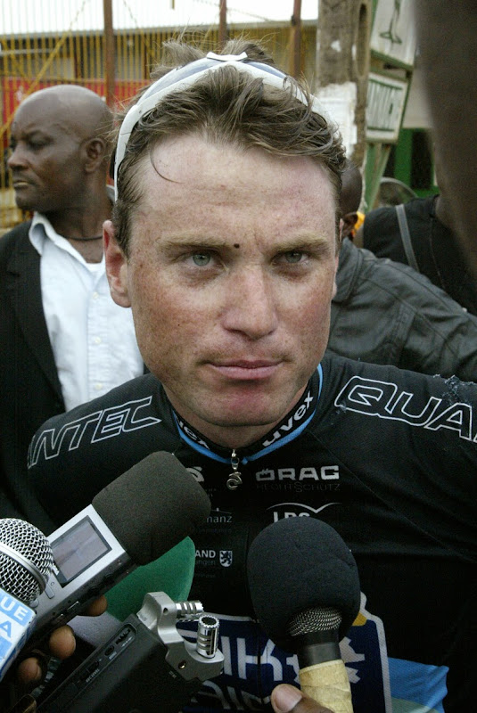 Radrennen in Zentralafrika sind dabei in allerlei Hinsicht eine ganz besondere Herausforderung. Ob Klima, Essen, Organisation, Zustand der Straßen, die Kultur der Menschen, letztlich ist alles anders wie gewohnt. Neben der sportlichen Belastung muss man charakterlich sehr gefestigt sein, muss sich ständig auf neue, ungewohnte Situationen einstellen und hoffen, dass der Körper die Umstände verträgt. Deswegen sind im Team einige Fahrer, die schon etliche Rundfahrten in solchen Ländern bestritten haben. Elmar Hantzsch hat es dennoch erwischt. Er liegt nun erstmal auf der Tropenstation in einer Klinik und muss eine Malaria auskurieren.