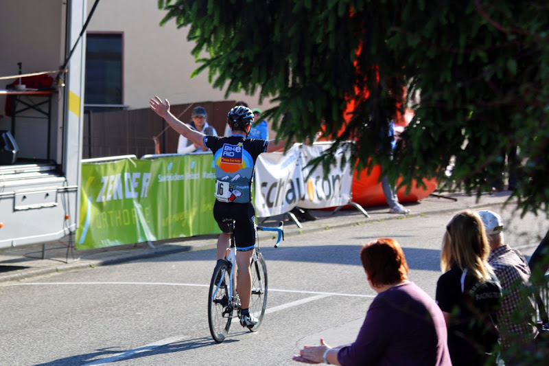 Im Rennen der Männer Elite kamen auf rund 105km gleich mal 1.800 Höhenmeter zusammen. Aber es waren genug schnelle Jungs am Start, die man auch irgendwie müde machen musste. Patrick Lechner und Richard Stockhausen hatten von den BIKE AID Fahren die besten Beine und konnte als Einzige dem hohen Tempo folgen. Am Ende konnte Patrick Lechner seinen Saarlandmeister Titel verteidigen und im Gesamtrennen einen starken 6. Platz belegen. Sein Teamkollege Richard Stockhausen wurde Vize Saarlandmeister vor dem Mountainbiker Sascha Schwindling (RSC St. Ingbert). Als Topfavorit auf den Gesamtsieg ging Jan-Niklas Droste (Team Heizomat) ins Rennen, neben Christopher Hatz (MLP Team Bergstraße). Die beiden mussten aber Simon Nuber (Team Möbel Ehrmann) den Vortritt lassen, der damit auch Rheinland-Pfalz Meister wurde.