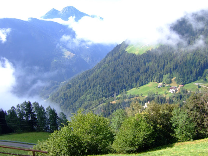 äußerst knifflige Abfahrt zur Staffleralm auf 1860m runiert meine Bremsbeläge - und ich muß mitten unter Kühen die Scheibenbremsbeläge wechseln. Das hat die Kuh nun auch noch nicht gesehen. Die Staffleralm ist ein Geheimtip und so bin ich an diesem Tag auch der einzige "Touri" inmitten einiger einheimischen Berg-Wanderer. Dort kommt man nämlich weder mit Auto, Motorrad oder sonst etwas hinauf. Die Versorgung geht nur über eine kleine Material-Seilbahn. Selten also, daß ein Biker dort vorbeikommt - und von oben, so sagt der Wirt, hat er noch nie einen kommen sehen.