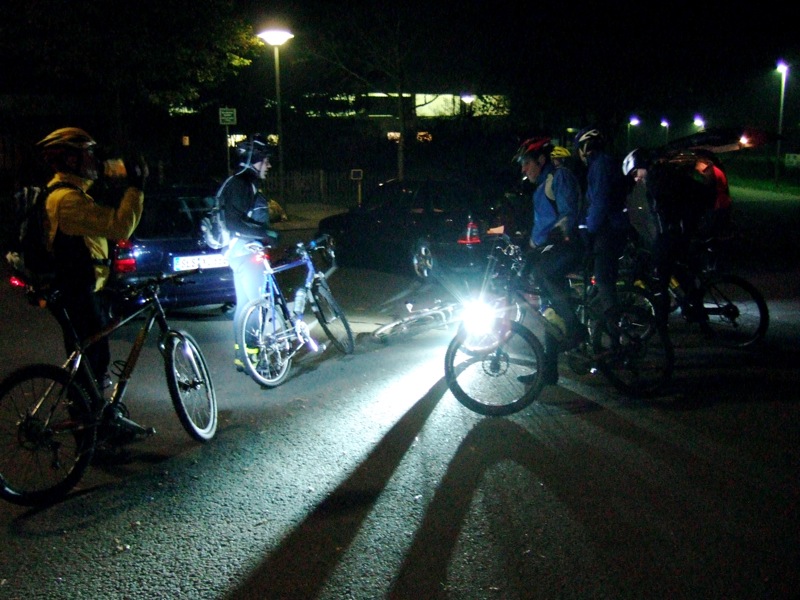 Kaum am Start, schon der erste Defekt. Alex' Sattel ist einfach durchgebrochen. Ob das wohl mit der Kälte zusammenhing? Heute stand uns jedenfalls eine echte Herausforderung bevor. Die Singletrail-Tour rund um Berus bei Nacht.