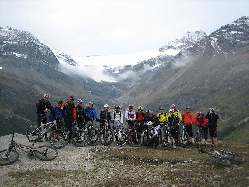 Suvrettapaß erreichen. Kleiderwechsel, Riegel reinschieben, Federweg auf maximal, Sattel runter -