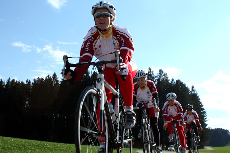 Die 10km Runde im Allgäu stellt neben dem welligen Terrain vor allem mit dem 2km langen Anstieg zum Ziel eine Herausforderung an die Fahrerinnen, bedenkt man, dass dieser 11mal zu fahren war. Krankheitsbedingt war das Team aus dem Saarland nicht mit voller Stärke vertreten, die Fahrerinnen gaben jedoch alle ihr Bestes und sorgten für ein gelungenes Ergebnis. Katrin Hollendung kommt bergauf immer besser zurecht und zeigte erneut ein gutes Rennen. Im Ziel setzte sie sich sogar gegen die Luxembourger Meisterin Nathalie Lamborelle durch und belegte den 22. Platz. Bei der Ronde de Bourgogne in Frankreich war bereits zu sehen, dass Sabine Fischer dieses Jahr gut in Form ist. In Günzach fuhr sie ein engagiertes Rennen und konnte sich lange Zeit in der ersten großen Gruppe hinter den beiden Führenden Claudia Häusler (Cervelo Test Team) und Bianca Purath (Equipq Nürnberger) halten. Mit Manuela Haverkmap auf Platz 30 war eine weitere Fahrerinnen in der ersten Hälfte vertreten, was dem Team Platz 5 in der Mannschaftswertung einbrachte.