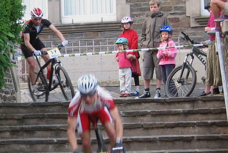 Die Strecke war insgesamt recht schnell, aber trotzdem noch technisch. Dank des trockenen Wetters war auch das Kopfsteinpflaster gefahrlos fahrbar. An zwei Stellen gab es einige Treppenstufen zu meistern, die auch von den meisten Fahrern problemlos in voller Fahrt genommen wurden.