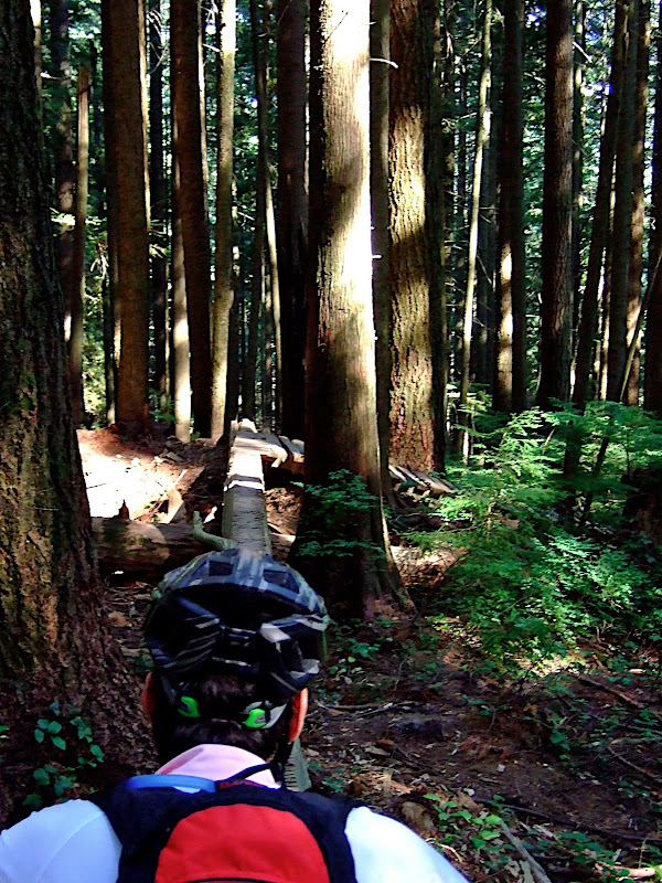 Wie dem auch sei - man muß ja nicht jeden Sch... mitmachen. Ein paar extreme stellen umgehe ich also zu Fuß. Der Rest ist einfach nur Fun. Extrem gut angelegte Steilkurven und Rampen aus Holz lassen echtes Northshore Feeling aufkommen.