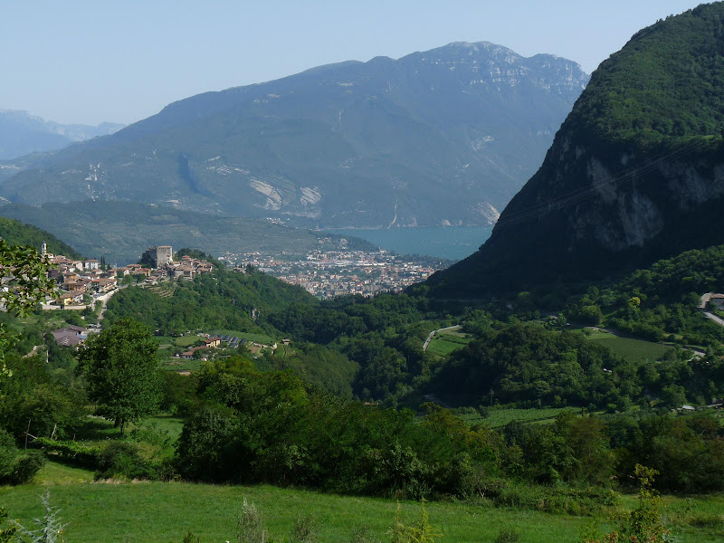 Heute geht es durch die Brenta zum Gardasee - das ist ein Nationalpark und Bärengebiet. Wer durch diese wunderschönen Wälder fährt, kann sich vorstellen, dass sich hier auch Braunbären wohlfühlen. Gesehen haben wir aber keinen. Vorbei an der Cascade di Mezza, einem schönen Wasserfall geht es hoch zum Lago d’Agola - einem Traum von Bergsee mit schmaragtfarbenem Wasser und einer grandiosen Berglandschaft. Jetzt geht es eigentlich nur noch bergab - hätten wir das richtige Roadbook dabei. Das aber schlummert in meinem Briefkasten und wir fahren falsch - auch weil mein Track nicht ganz mit dem Roadbook übereinstimmt. Statt auf einer alten Höhenstraße Richtung Ponto Sarca fahren wir Deppen unten im Tal um dann noch über den letzten Pass, den Passo Campe Carlo Magna bei recht dichtem italienischen Verkehr nach Riva del Garda zu kommen. Radfahren im italienischen Verkehr ist ohnehin nur etwas für Masochisten. In Torbole angekommen geht es direkt zur Strandbar, wo wir den Abschluss dieses Alpencrosses feierlich begießen. Prost!!
