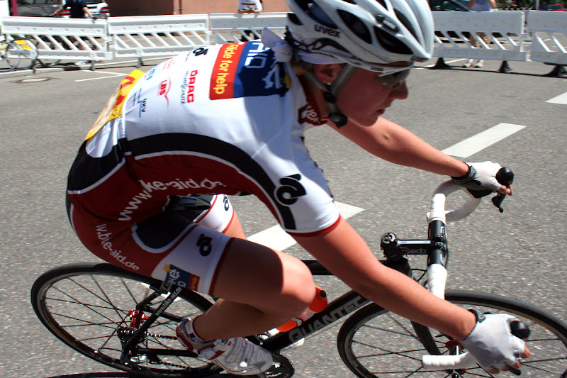 Nun aber genug der Kultur und zurück zum Sport, denn damit haben ARD und ZDF damals schon die jüngeren Zuschauer bei der Tour de France zu Eurosport getrieben um letztlich beleidigt die Übertragung einzustellen, aber das ist ein anderes Thema:-). Unsere Mädels mussten ein Kriterium gemeinsam mit den männlichen Junioren absolvieren. Für viele Fahrerinnen meist ein Grund nicht zu Starten, da sie den Hahnenkämpfen der Heranwachsenden gerne aus dem Weg gehen. Rund 20 Fahrerinnen trauten sich dann aber doch. In der Favoritenrolle war natürlich das heimische Team Stuttgart, bei dem auch Désirée Schuler 2002 ihre ersten Teamerfahrungen in der Bundesliga sammeln konnte. Nach den ersten Wertungsrunden konnten sich gerade mal 5 Fahrerinnen in der ersten Gruppe halten. Darin auch Désirée Schuler, die sich am Ende über Platz 2 hinter Melanie Wotsch freuen konnte. Den Sprint der Verfolgergruppe gewannen souverän die beiden BIKE-AID Fahrerinnen Nicole Ackermann und Ellen Janßen, die somit die Plätze 6 und 7 belegten.